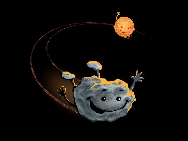 Einst lebte Stups auf dem Komet Rasefix. Doch der hat sie abgeschüttelt. Jetzt fliegt sie allein durchs Sonnensystem. Wo kann sie landen?