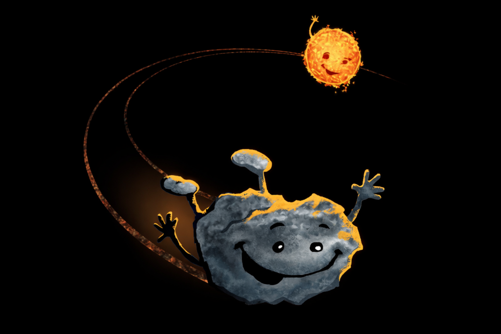 Einst lebte Stups auf dem Komet Rasefix. Doch der hat sie abgeschüttelt. Jetzt fliegt sie allein durchs Sonnensystem. Wo kann sie landen?